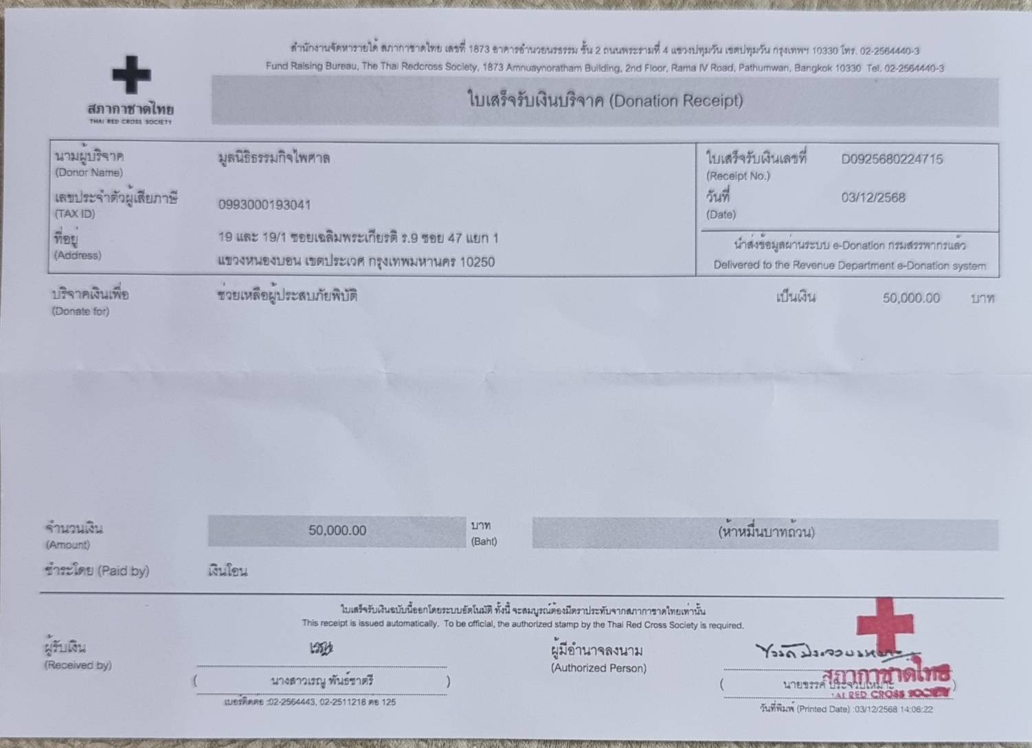 วันที่ 5 ธ.ค. 2568 มูลนิธิธรรมกิจไพศาลระดมทุนร่วมบริจาคให้กับสภากาชาดไทยช่วยผู้ประสบภัยน้ำท่วมภาคใต้